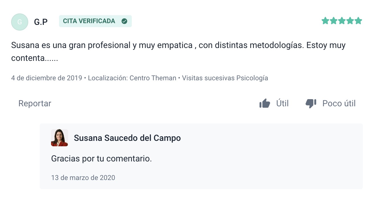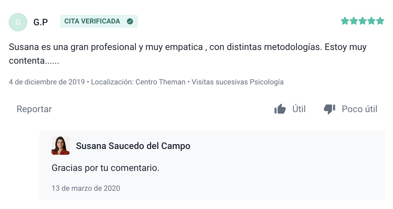 Licenciada en Psicología por la Universidad Complutense de Madrid.